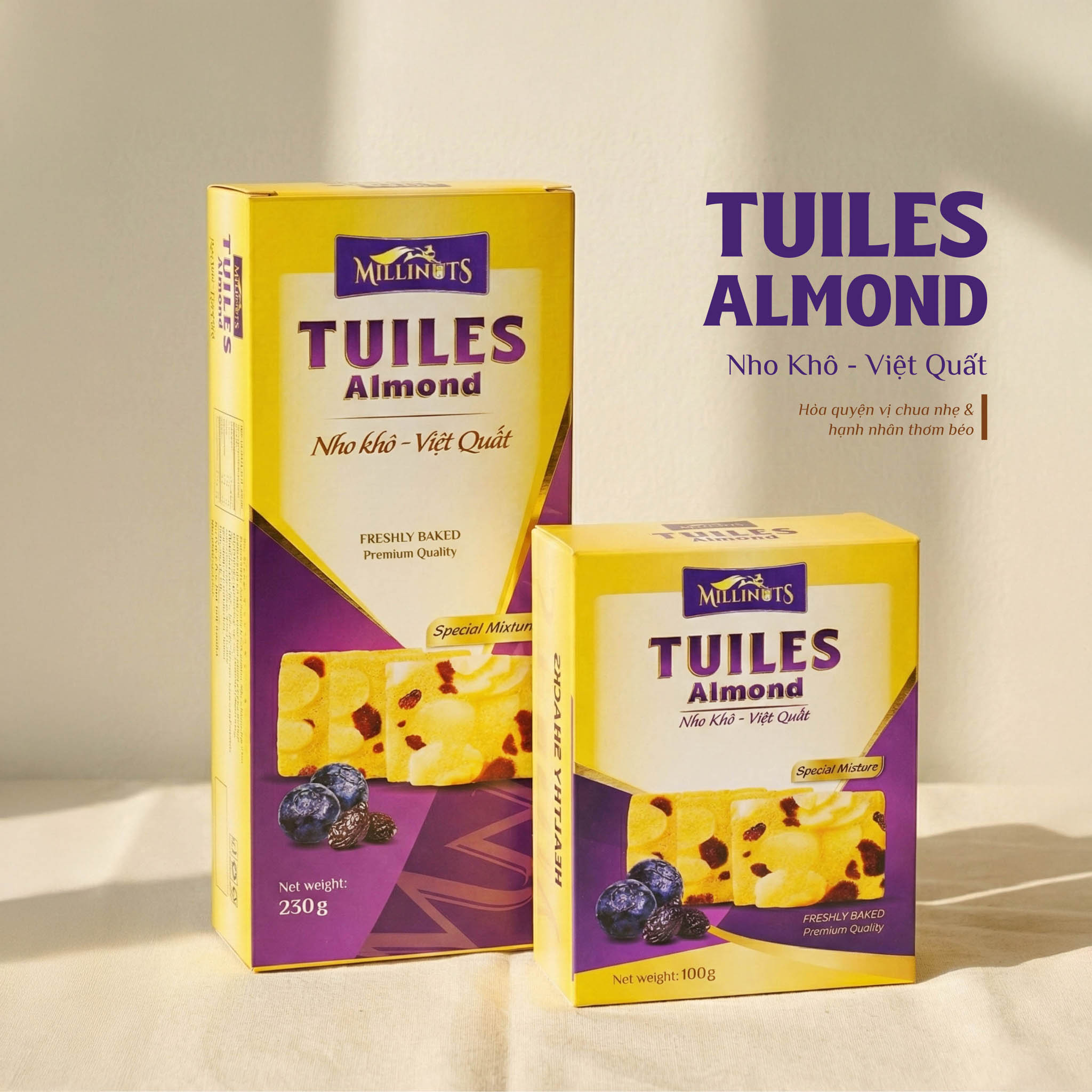 - Tên sản phẩm: Tuiles Almond Nho Khô – Việt Quất